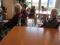 入居者様からのリクエスト曲を聞き語りで歌われ