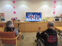 入居者様順番にマイクを回してカラオケ(^^♪を
