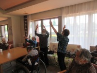 小金原公園の入居者様は元気いっぱいラジオ体操参加され