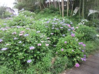 満開で奇麗に咲いている紫陽花を車窓からでしたが