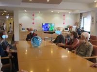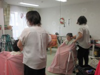 入居者様ラジオ体操参加されていらっしゃる