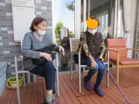 小人数づつテラス・中庭で日向ぼっこです。