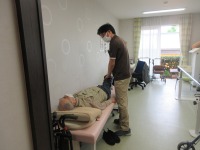 指導員のマッサージをリハ用ベットで