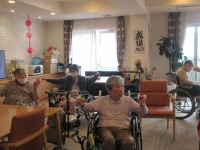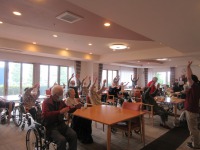 入居者様は本日も元気にラジオ体操参加され