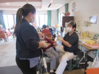フラワーアレンジメント持参され、入居者様大変喜ばれて