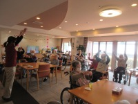 テラスに出てお花を鑑賞されたり、メダカ達に