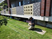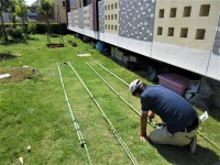 中庭の紹介②…緑のカーテン制作中