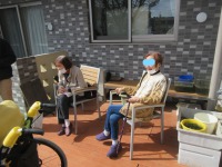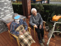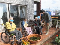 入居者様と日向ぼっこを楽しまれている様子を