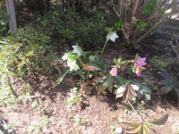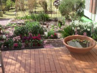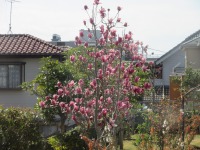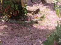 中庭の河津桜🌸の花びらがピンク色の絨毯と