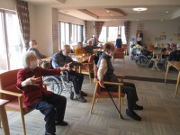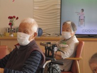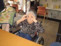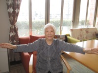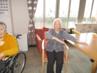 入居者様とても良い笑顔で身体を動かしていらっしゃる