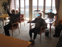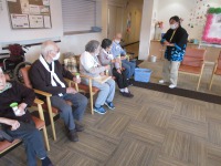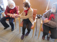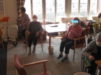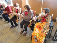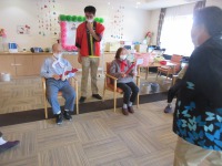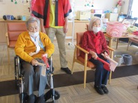 折り紙の傘を取り付けた物でピンポン玉送りゲームで