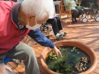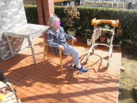 入居者様日向ぼっこをされ、楽しまれておりました。