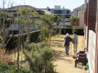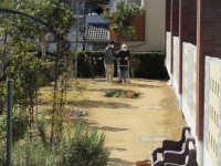 テラスと中庭にスタッフ付き添いにて