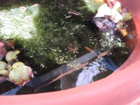 日向ぼっこされたり、サークル歩行器で