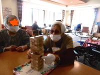 ジェンガゲームをされ笑い声が上がって