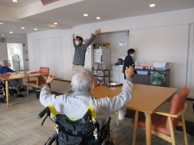 午前中は昼食前に1階フロアで全体体操を行いました。