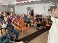 今日のシーハーツ小金原公園は午前中音楽療法講師をお招きしての音楽療法を開催しました。午前中1時間ほど心身のリラックスやストレスの低減、体の運動機能の低減などを目的として楽しいひと時を過ごしてもらいました。その後昼食を挟んで午後からは毎月恒例の歌と想い出♪鑑賞会を実施しました。季節を感じる曲🎄から皆様よくご存じの定番の曲まで元気に曲に合わせて歌っていただきました!
