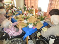 今日のレクリエーションはフラワーアレンジメントの講師をお招きしてフラワーアレンジメント教室を開催しました。作り方のポイントを習いながら、皆様上手に配置を考えながら上手にアレンジされておりました。それぞれ作成したフラワーアレンジメントをお部屋に飾っていただき、華やいだ雰囲気で生活が出来そうですね!
