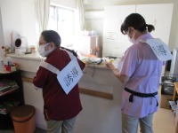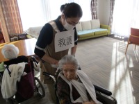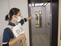 訓練を行うにあたって、あらかじめ目標を設定しその設定通りに行動出来るのか、事前に打ち合わせを行い、スタッフが役割を分担しました。今日は震度6の地震が発生したという想定で行動を開始。入居者の安否や火元の確認、けが人の有無の確認。エレベーター内に閉じ込められた人がいないかを確認しました。