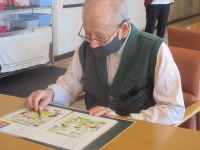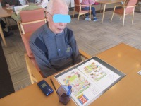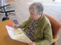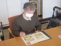 入居者様プリントとにらめっこで一生懸命に
