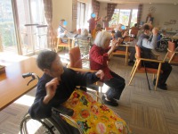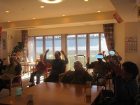 入居者様の方々腰掛けて体操される方