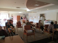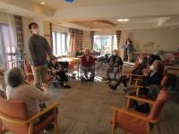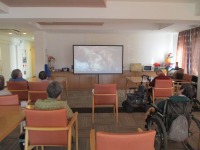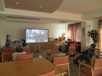 入居者様真剣にプロジェクターの画面を