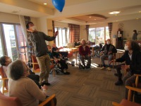 スタッフがお腹の中に風船を入れて入居者様と