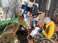 お花🌼を見たり🐟メダカ達の鉢を覗いたり