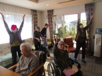 明るい声掛けに入居者様も元気よく体操参加され過ごされて