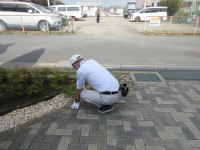 玄関先の植栽のお手入れをしています。