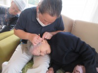 入居者様1Fラウンジにてラジオ体操参加の様子です。