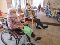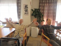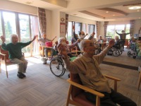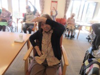 入居者様元気よく体操参加され過ごされて
