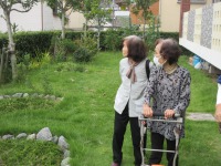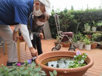 中庭のお花をご覧になられたり、メダカ達の様子を