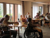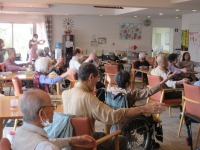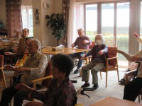 スタッフ指揮のもと入居者様ラジオ体操参加され