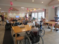 明日は夏祭り!前日の入居者様のラジオ体操です。