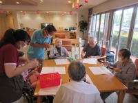 曲に合わせて歌い演奏して入居者様