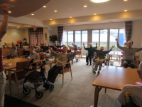 入居者様には体操後にこまめな水分摂取を