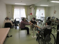 リハビリを数人で行っています。