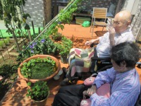 天気が良かったので中庭に出て