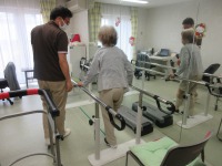 平行棒を使用しての歩行訓練です。