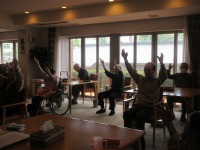 入居者様には体操後にこまめな水分摂取