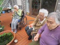 テラスにて過ごされている入居者様に