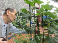 入居者様と一緒にきゅうりの収穫を