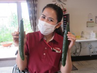 収穫出来たきゅうり海外実習生さんと