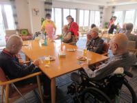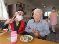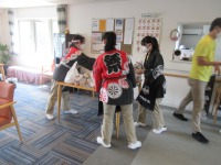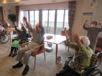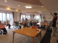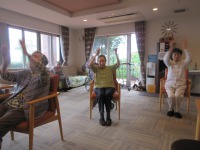 水分摂取を声掛けし昼食前の体操の様子でした。