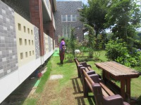 中庭で