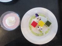 3種類のプチケーキに生クリーム