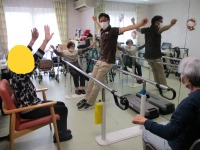 1人では体を動かすのが億劫になっている方も周りの周りの方がやっていると