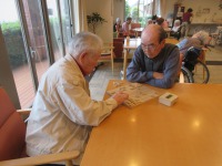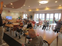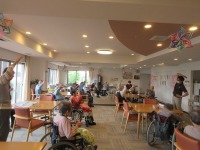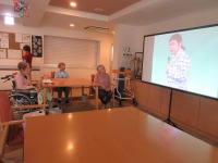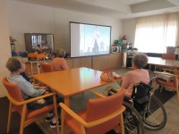 と塩サケ、トマトサラダ、スープ、フルーツ