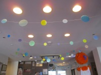 正面玄関の天上から涼しげな水玉模様
